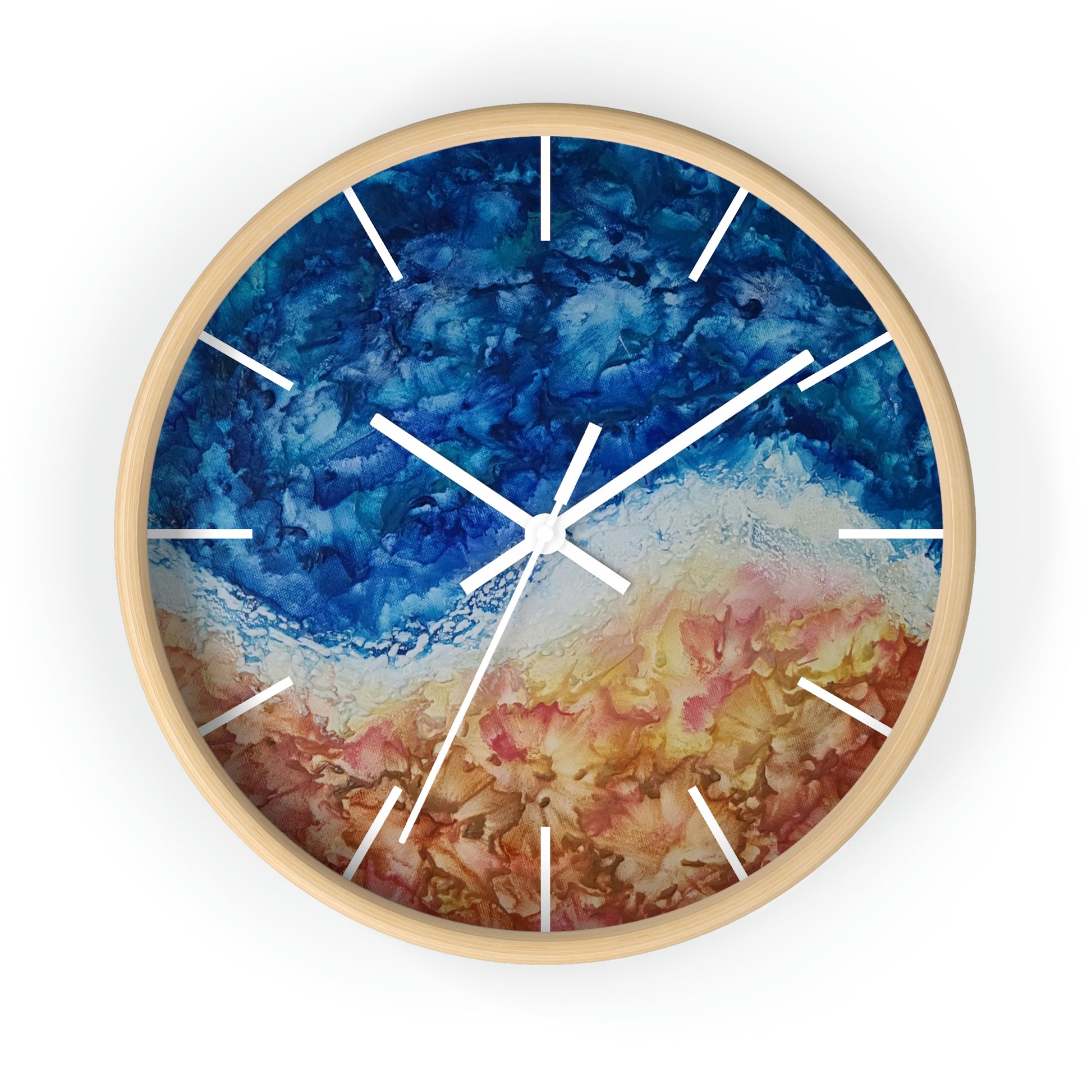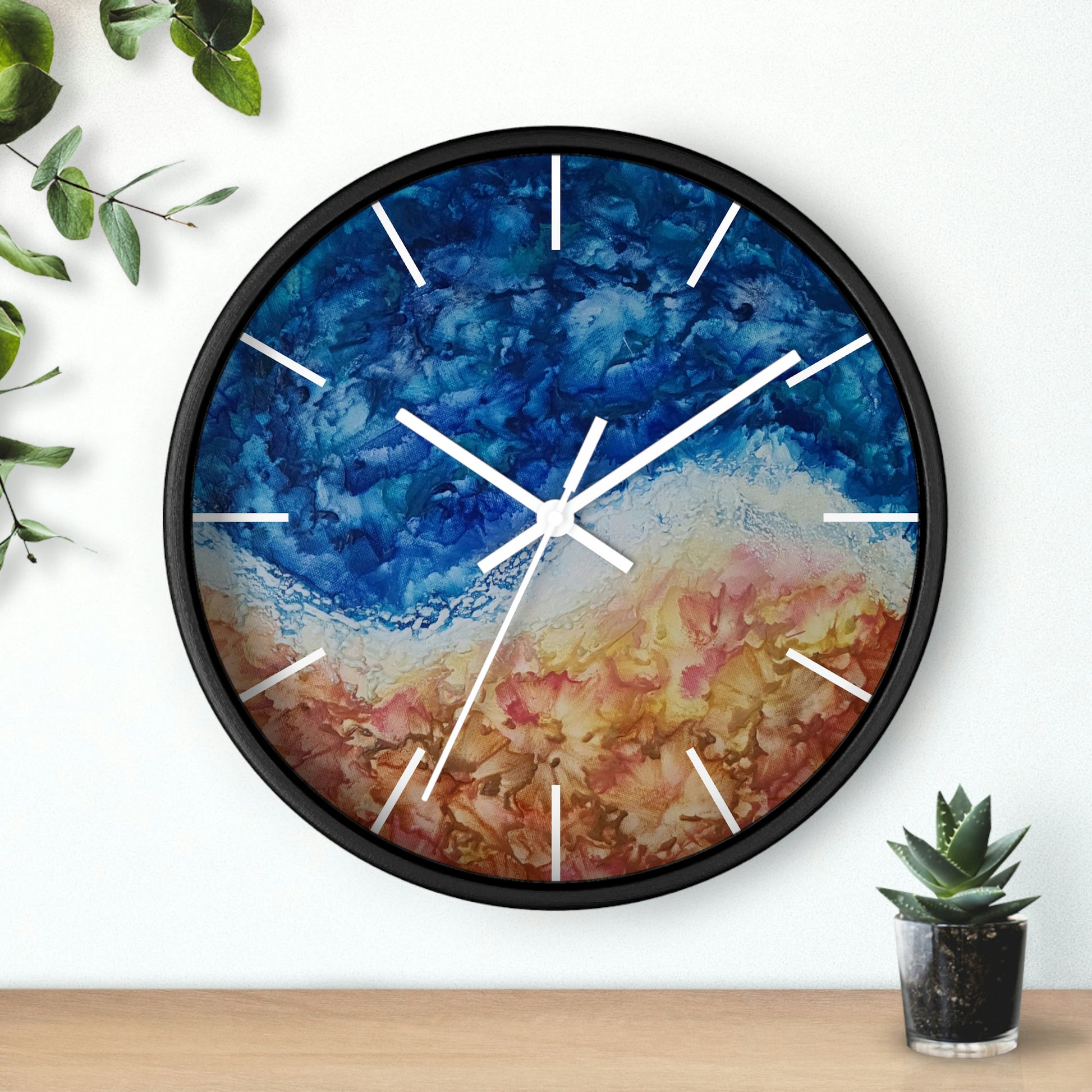 Escape into serenity with this peaceful wall clock, featuring my exclusive Sandcastles in the Sky encaustic artwork. With soft, sunlit tones and gentle movement, it invites you to drift toward quiet shores, warm breezes, and the soothing rhythm of the tide.