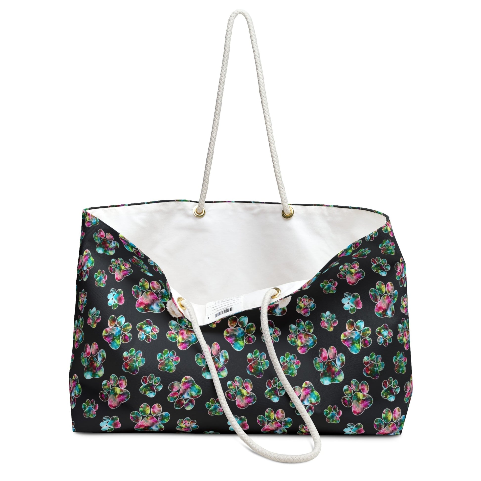 "This bag is adorable and so roomy! I took it on a weekend trip and it held everything I needed. The paw prints make me smile every time I look at it." – Hannah