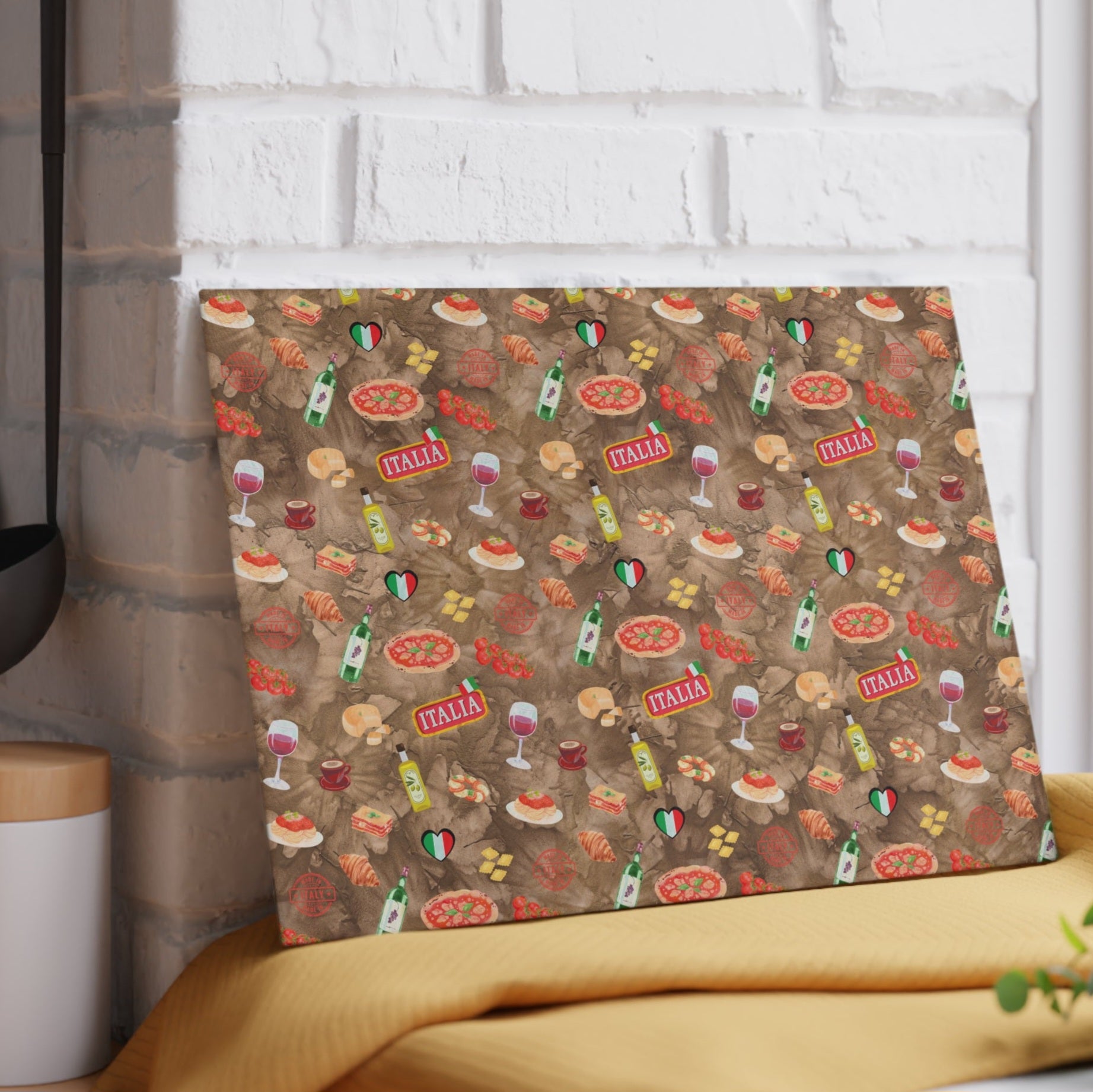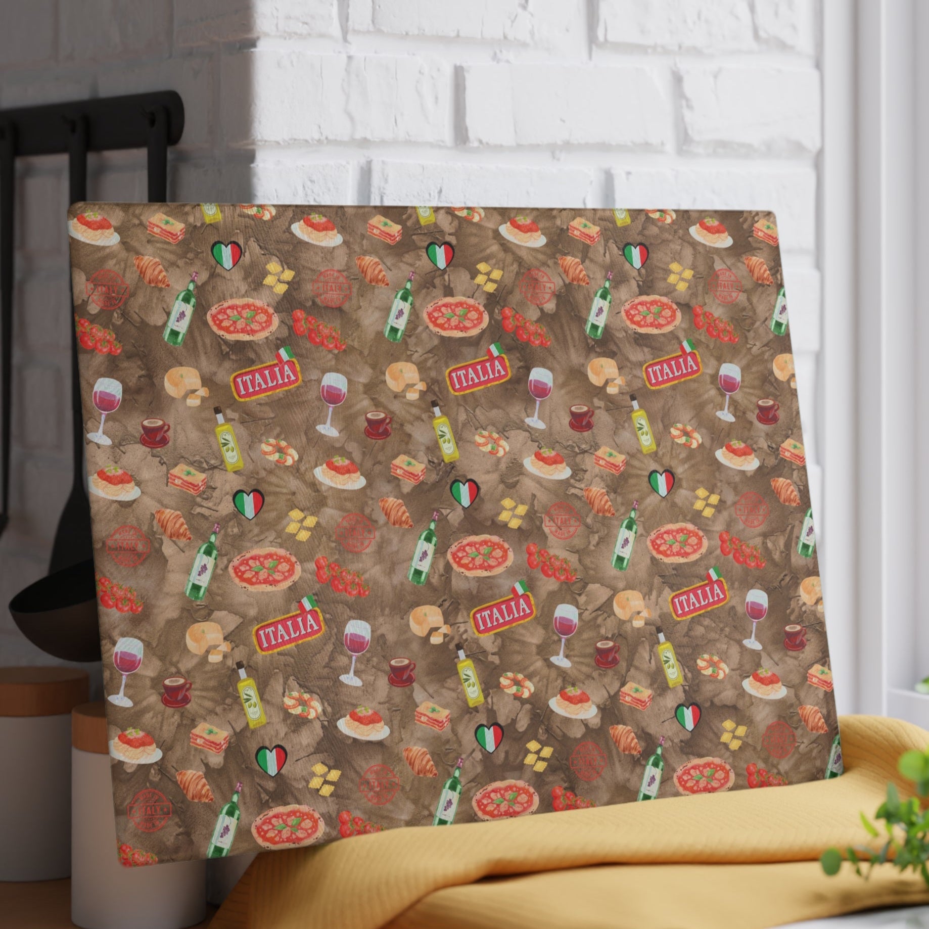 Add a touch of Italian charm to your kitchen with this vibrant, art-inspired cutting board, featuring my signature Mom's Italian Kitchen design. Whether prepping holiday feasts, everyday dinners, or simply displaying it as a decorative accent, this tempered glass board brings personality and warmth to your cooking space.