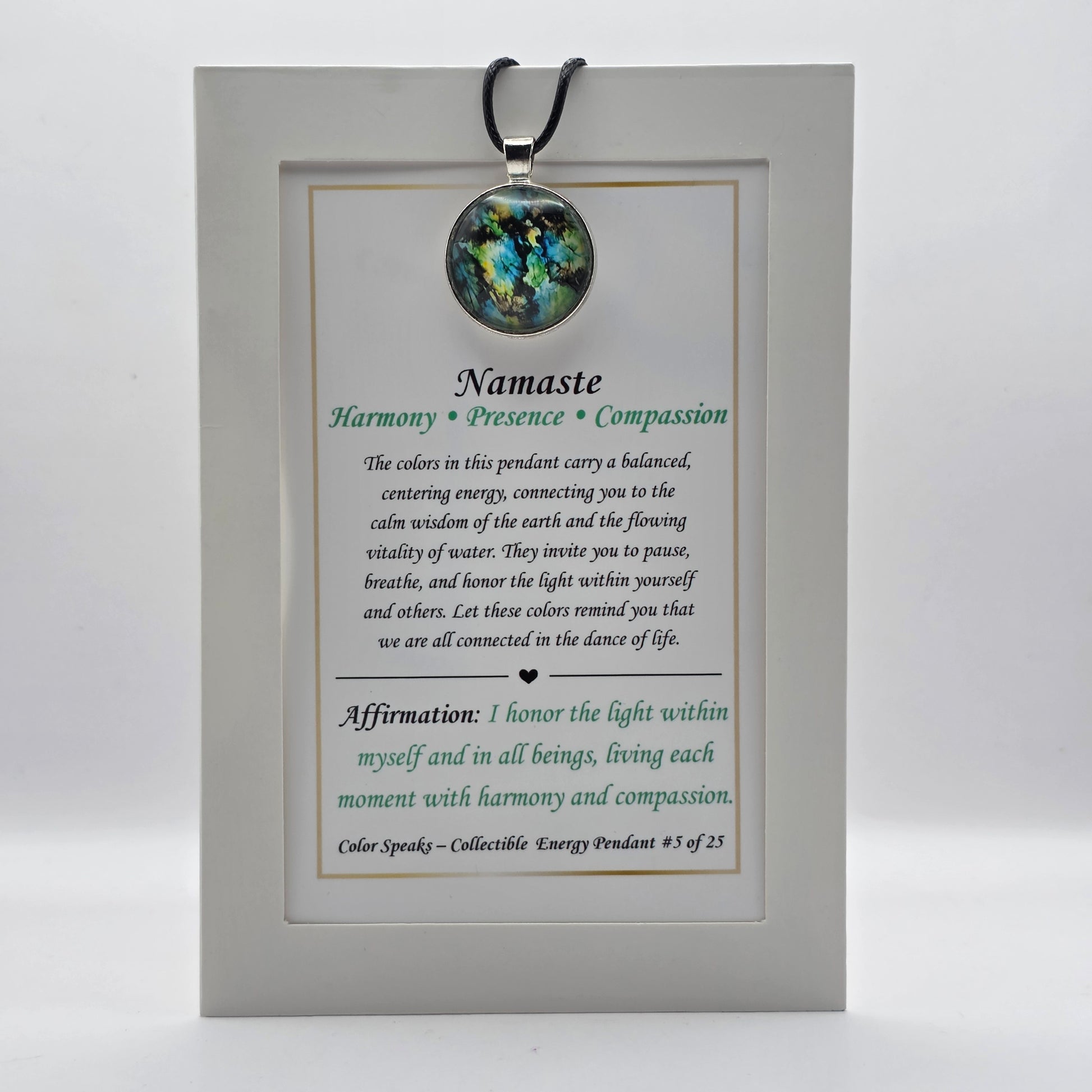 Namaste Pendant Card – Harmony • Presence • Compassion
