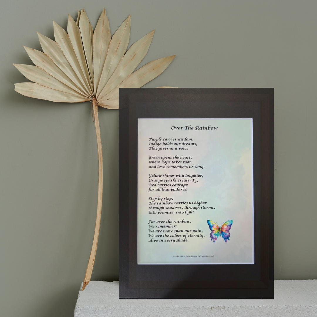 This colorful and empowering poem celebrates resilience and reminds us that life is not defined by our hardships but by the full spectrum of who we are. Written and designed by Alisa Marie, it makes a thoughtful gift or keepsake. Each piece is created with care to uplift the spirit and brighten the heart.