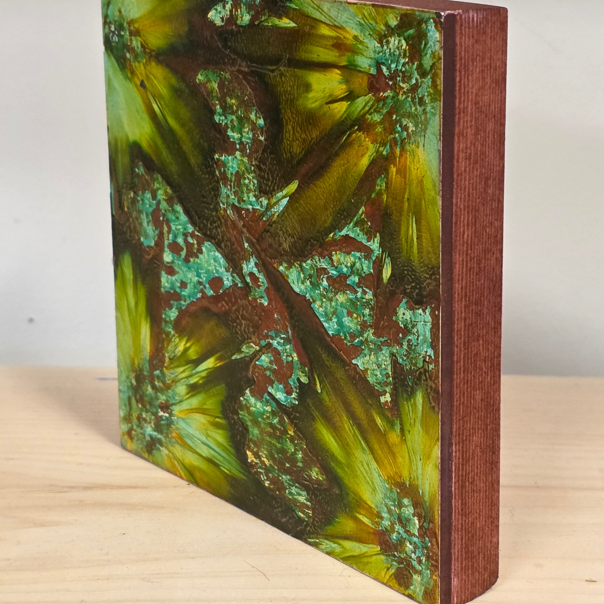 Let your spirit wander where color meets calm. Spirit of the Woods captures the grounding beauty of nature through rich layers of encaustic wax in earthy greens, browns, and turquoise tones. Each fused layer flows like sunlight through trees, reminding you to pause, breathe, and reconnect to what feels real and steady.