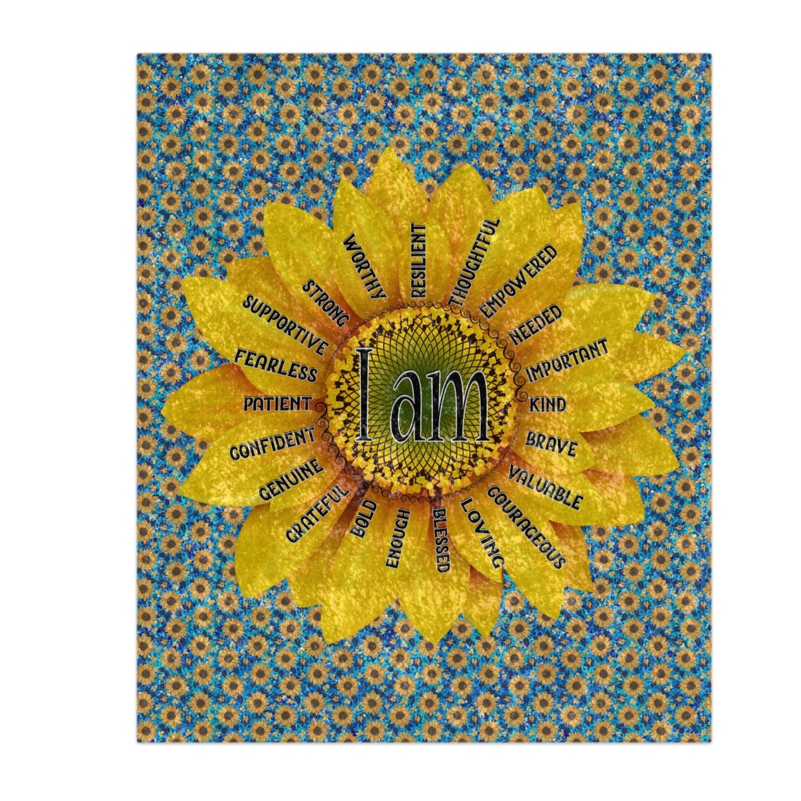 Wrap yourself — or someone you love — in softness, warmth, and uplifting energy. This luxurious crushed velvet blanket is more than just cozy — it’s a daily dose of encouragement. Featuring my original sunflower design and empowering “I am” affirmations, it brings comfort to both body and spirit.