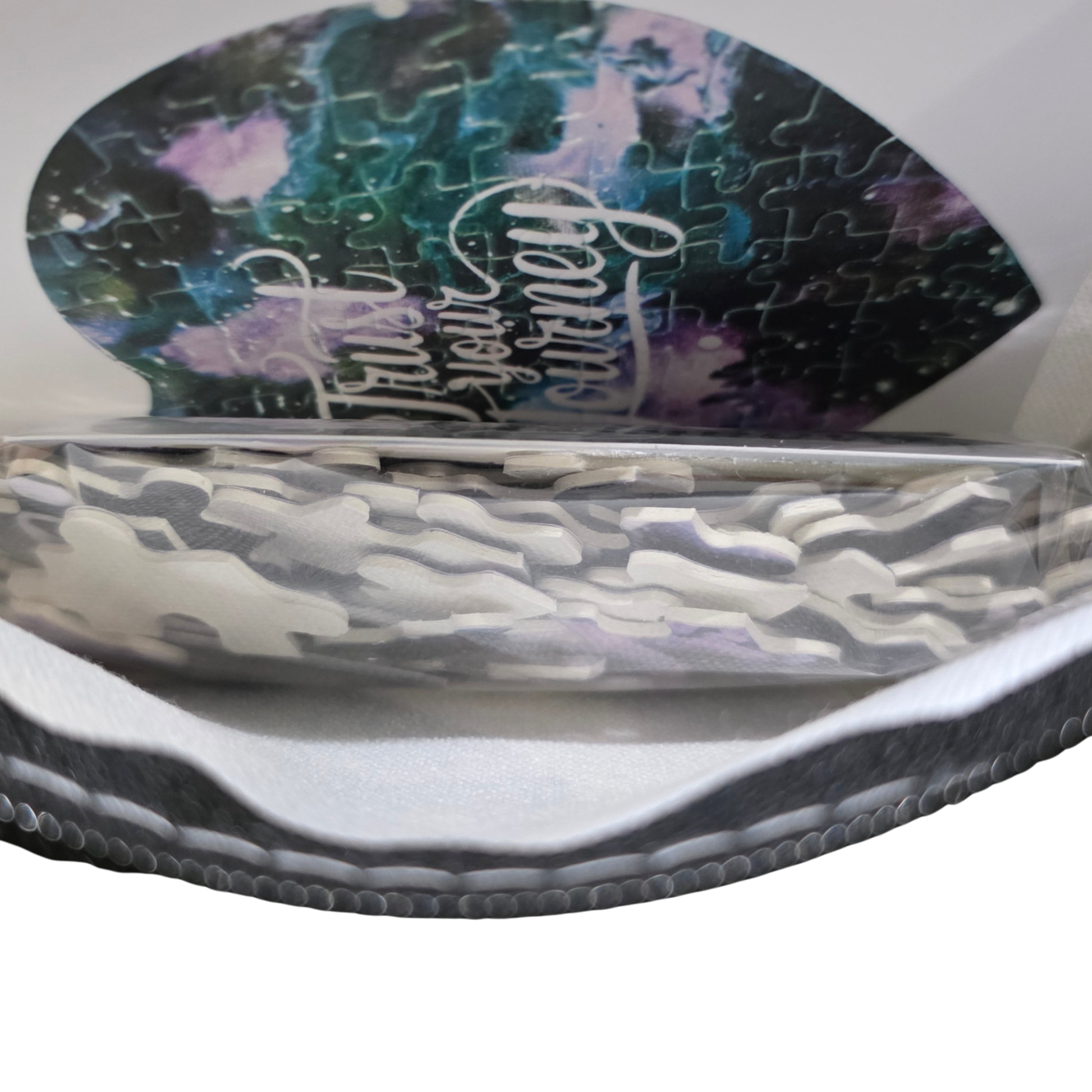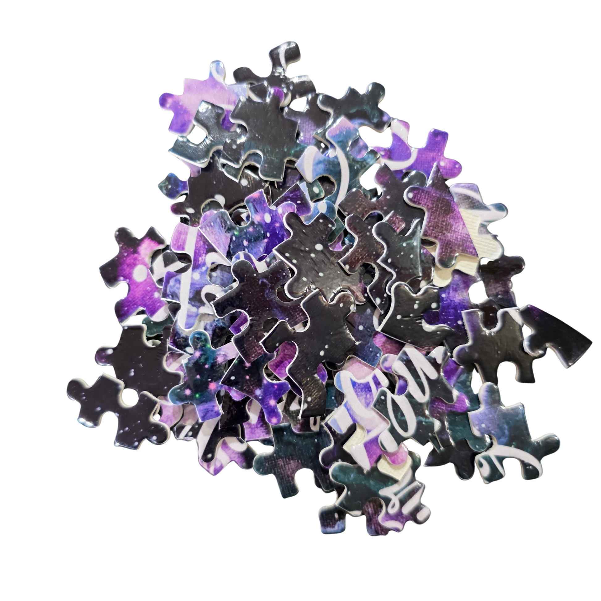 This 76-piece, heart-shaped fine art puzzle features my original encaustic artwork Purple Storm β a cosmic blend of purples, deep blues, and starlit whites designed to inspire hope, trust, and courage through every twist and turn of life.
