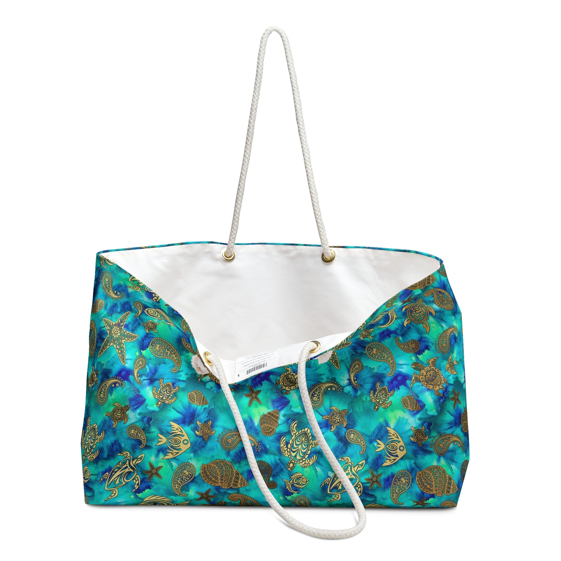 Featuring my Under the Sea signature artwork — blending turquoise waves, golden sea turtles, and coastal accents — this spacious, stylish bag brings the rhythm of the sea to every adventure.
